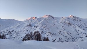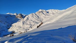 La partenza è situata presso il santuario di Castelmagno, in quanto di norma la strada viene pulita in inverno fino al rifugio Maraman (200m sopra il santuario). Consiglio di parcheggiare presso il parcheggio del santuario che è piuttosto capiente. Dal rifugio Maraman (ovvero rifugio di Castelmagno) inizia la traccia innevata. Da qui si può scegliere la direzione dell'escursione: direzione colle di Fauniera (che descriverò in un'altra scheda) e direzione monte delle Crosette. Oggi ho scelto il monte Crosette, ma purtroppo poco sotto la cresta ho dovuto smettere la salita a causa del forte vento che rendeva il resto della salita impossibile (pericolo di caduta e forte vento che portava la neve fresca in faccia). Il percorso non presenta particolari difficoltà tecniche. L'unica cosa è tenere ben presente il rischio valanghe in caso di neve non sicura. Consultare semre il bollettino valanghe. La discesa può avvenire sulla stessa traccia di discesa oppure spostandomi verso il centro come ho fatto io e sono sceso dritto per dritto (la neve stava diventando molle e il vento era insopportabile) fino alla stradina che riposta alla strada asfaltata (ora innevata) fino al rifugio Maraman. Qui è possibile fermarsi a mangiare un ottimo pasto oppure dei taglieri di salumi e formaggi. Verificare presso il gestore eventuali aperture e disponibilità dei posti.